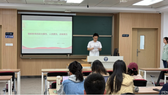 第二十八次全国高校党的建设工作会议于2024年12月19日至20日在北京召开。中共中央政治局常委、国务院副总理丁薛祥出席会议并讲话。理论学习中,支书带领大家总结学习工作会议精神,强调“高质量实施新时代立德树人工程”“落实学科专业结构优化调整、拔尖创新人才培养、关键核心技术攻关等重点任务”“提升党员队伍建设质量”等和同学们息息相关的内容。随后,正式党员王梓旭同志对教育的政治属性、人民属性、战略属性进行细致解读,帮助大家深刻领悟高校党的建设工作的根本遵循。