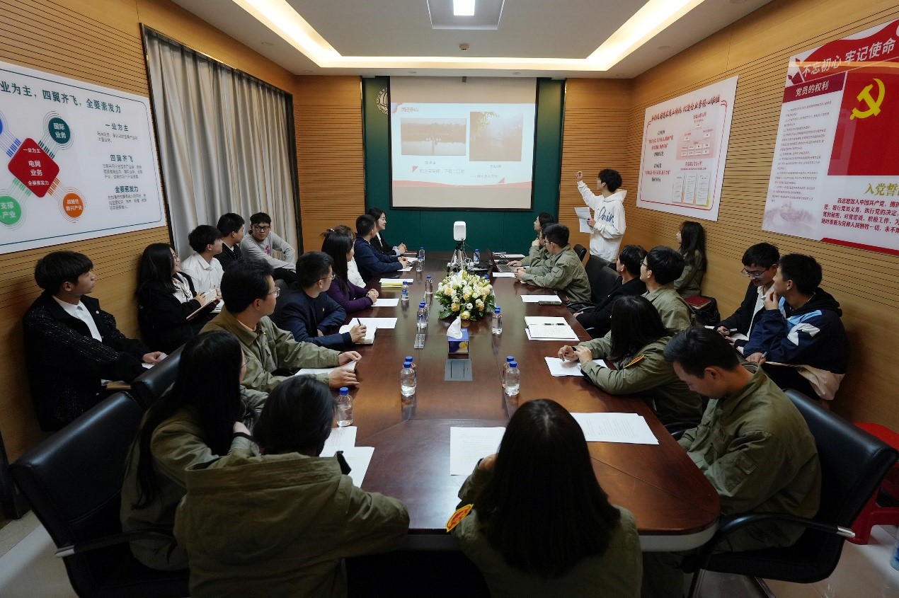 参观过后,A片直播 、国网武汉供电公司,国网湖北超高压公司团委组织开展座谈会。在百卅武大纪录片的背景下,A片直播 青马班团支部书记刘易承同学讲述了武大在抗日战争时期西迁乐山的故事。