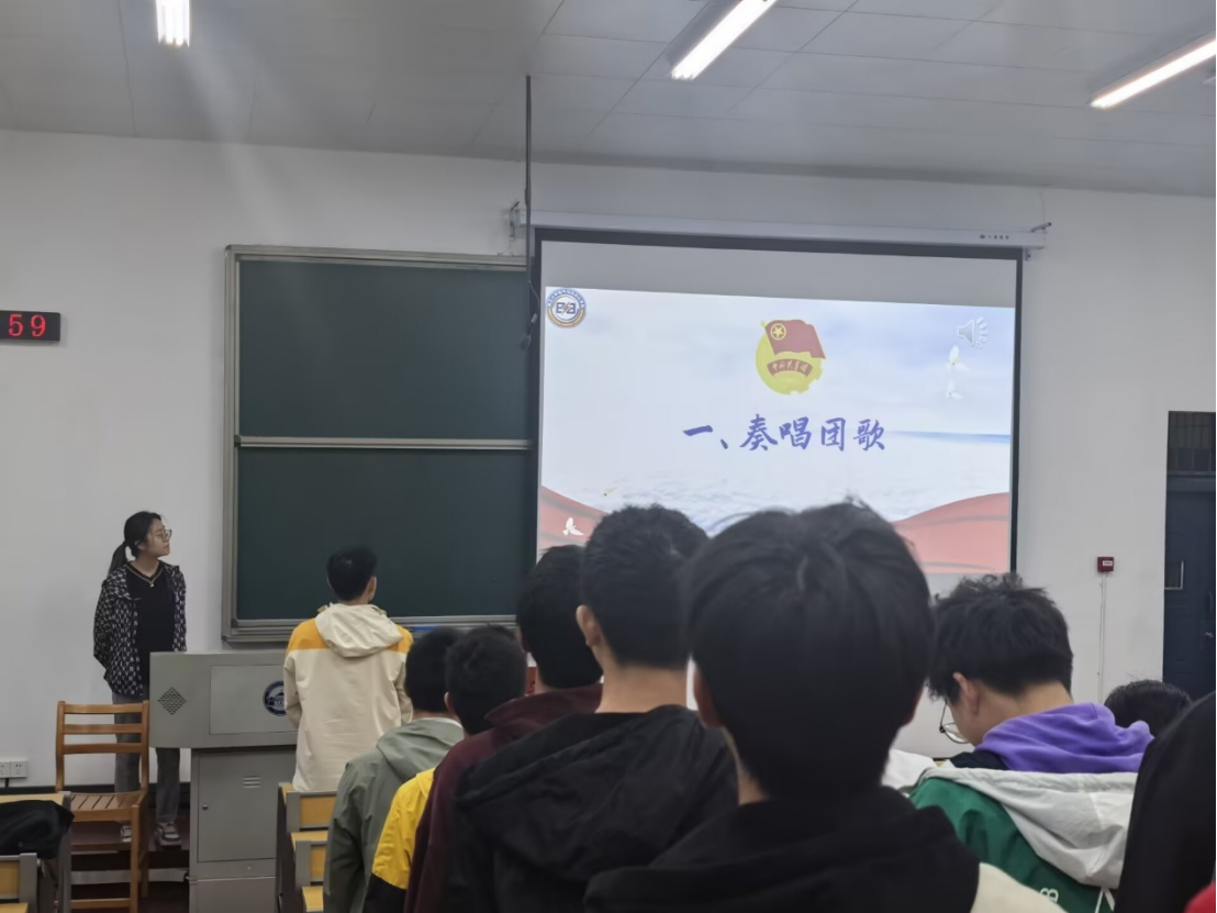 在主持人顾以珩同学简要介绍本次团课主要内容后,学员们全体起立,以饱满的热情合唱《光荣啊,中国共青团》。嘹亮的歌声,展现了团员青年们积极向上的精神风貌和赤忱热烈的爱团爱党之心。