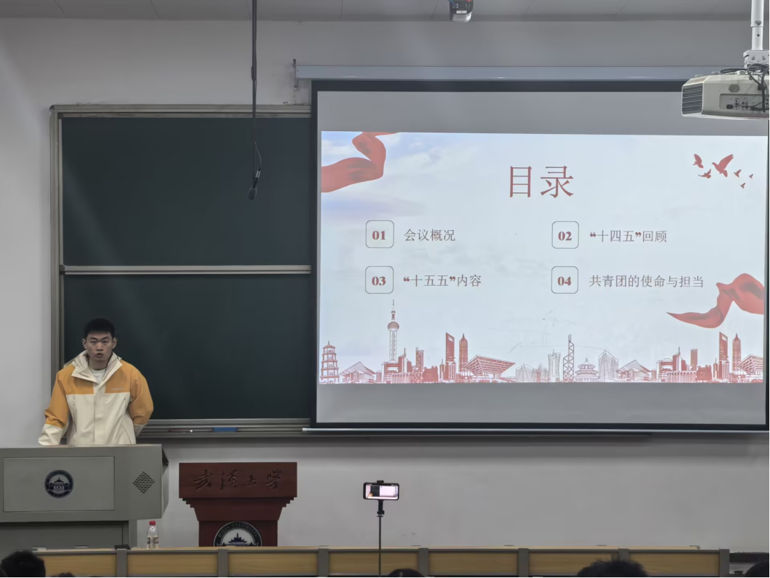 团委书记邹春航老师。邹老师开门见山,带领大家开始学习党的二十届四中全会精神。