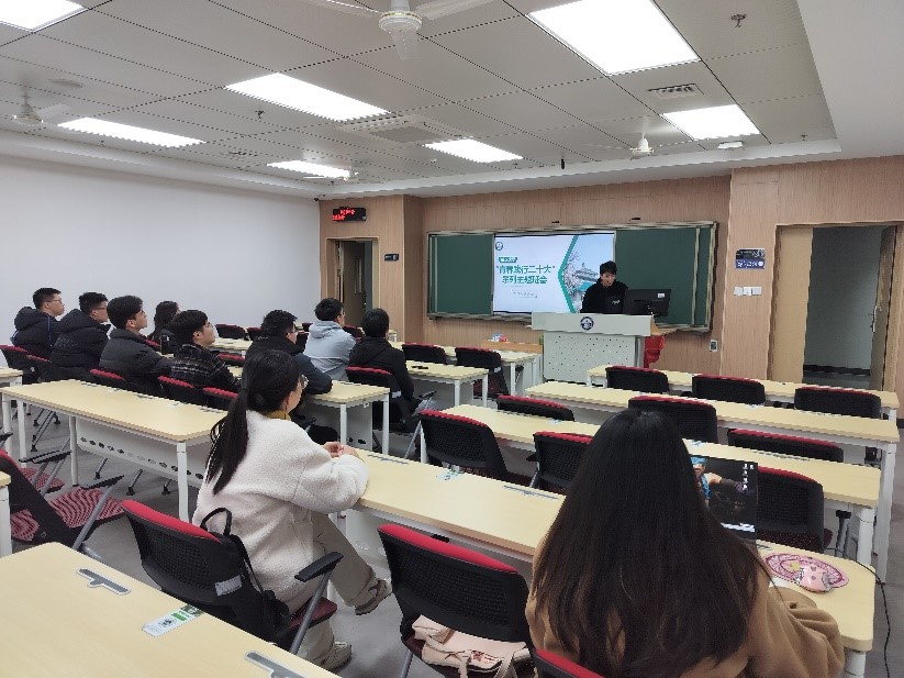 会议开始,团支书郑智超分析解读了党的二十大精神,强调了“坚持和加强党的全面领导”“坚持中国特色社会主义道路”“坚持以人民为中心的发展思想”“坚持深化改革开放”“坚持发扬斗争精神”的重大原则,使同学们深刻认识到党的二十大的重要意义。我国正处于社会主义发展的重要阶段,郑智超从外部环境和内部环境两方面分析,使同学们认识到我国当前面临的重要机遇和挑战,号召同学们不断强化自身能力,学好本领,积极筹备投入到祖国的社会主义建设中来,同时也要加强思想精神学习,提升精神境界。