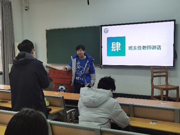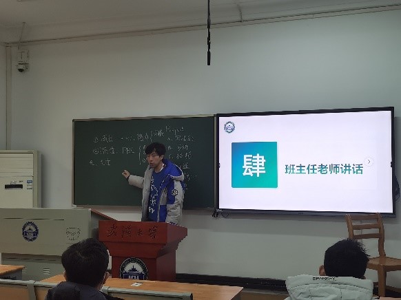 紧接着班主任唐飞老师分享了自己对毕设、科研、未来研究生生活的看法。唐飞老师结合自身科研项目经历,围绕班级同学提出的研究生生活心态如何调节、科研应该树立什么样的目标、科研项目中期汇报有什么注意事项等问题进行了针对性答疑。