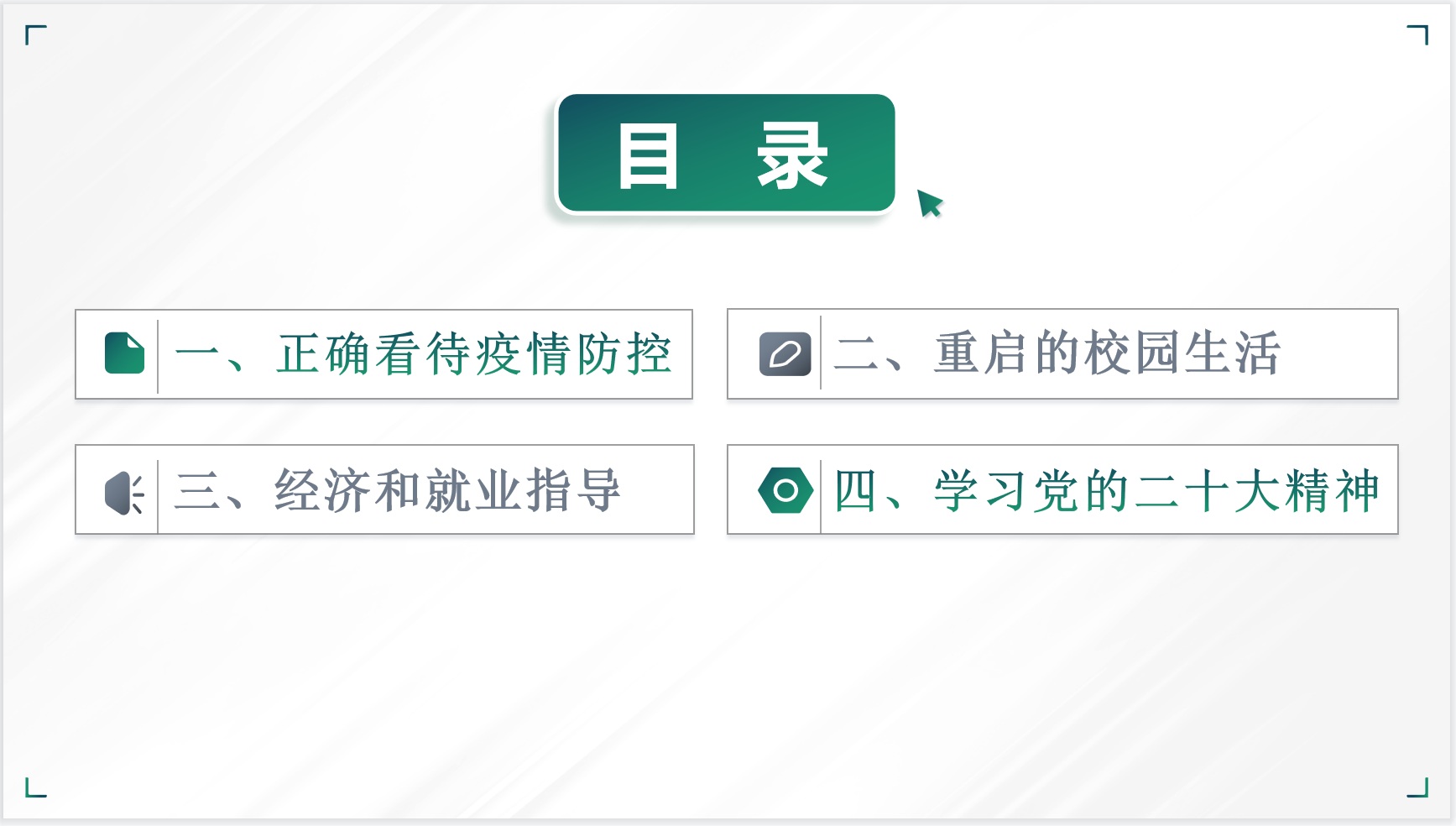 会上,班长从疫情防控,校园生活和经济就业指导三个角度介绍了疫情后的变化,并带领同学们学习了党的二十大精神,把握时代旋律。