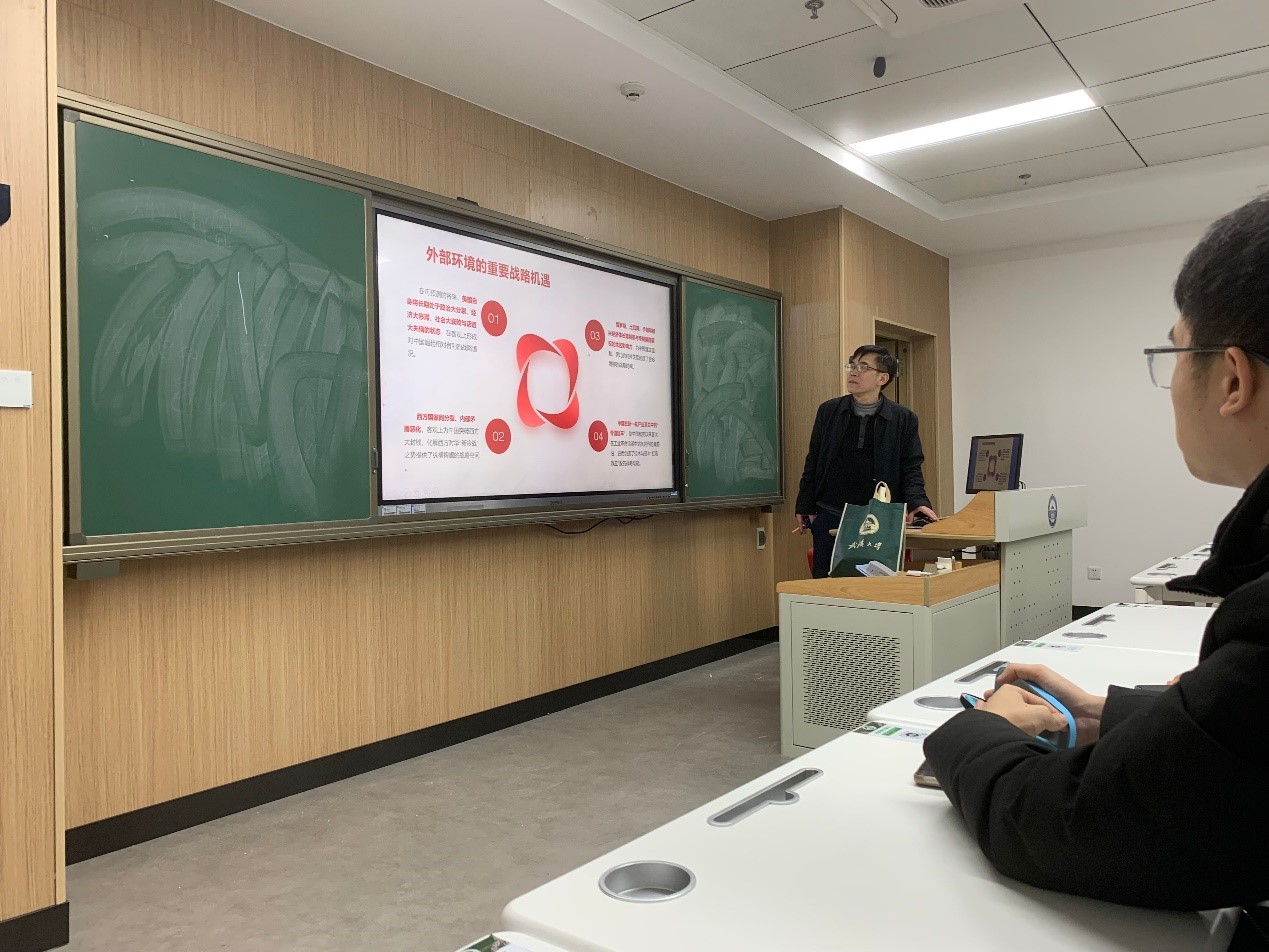 会议开始,宋老师首先提到了刚刚过去的三年疫情。他带领同学们回忆了2020年初疫情肆虐期间医护人员的牺牲和奉献,呼吁我们以平和的心态对待疫情以及之后的一系列疫情带来的挑战。接下来,宋老师分析了后疫情时代下的经济和就业态势。他指出,在三年疫情和中美贸易战的双重影响下,国内经济态势持续低迷。在此情况下,我们既要看到风险,也要看到机遇。风险是外部环境可能带来的,而机遇是国家提供的青年人才的战略机遇。