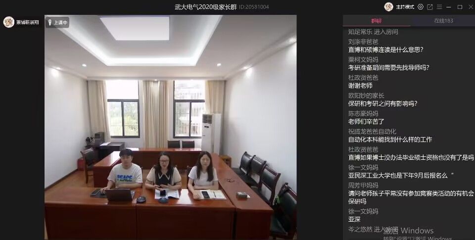 顺利召开本科2020级线上家长会。辅导员张晗老师、兼职辅导员靳展翔老师和梁美欣老师出席本次会议,2020级学生家长参会。