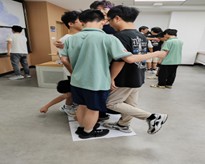 “同舟共济”环节将气氛推向高潮!各组需在有限“纸舟”上全员站稳,同学们或背或抱、金鸡独立,甚至上演“叠罗汉”,在摇摇晃晃中寻找平衡。有人笑称:“这比高数题还考验策略!”最终,协作智慧战胜物理极限,掌声与欢呼响彻教室。