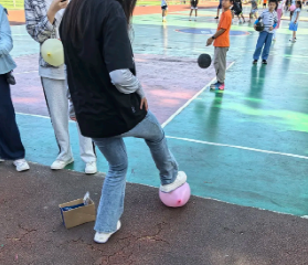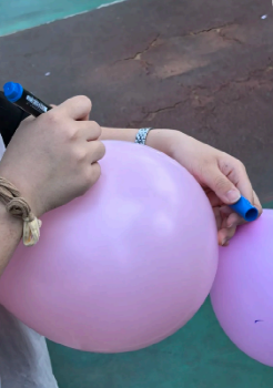 第一个活动,我们选择了简单又能炒热气氛的“压力气球爆破战”。同学们领取气球,吹胀后写下近期压力源。随后,大家将气球抛向空中,随机接住他人气球,轮流念出压力源后踩爆气球。